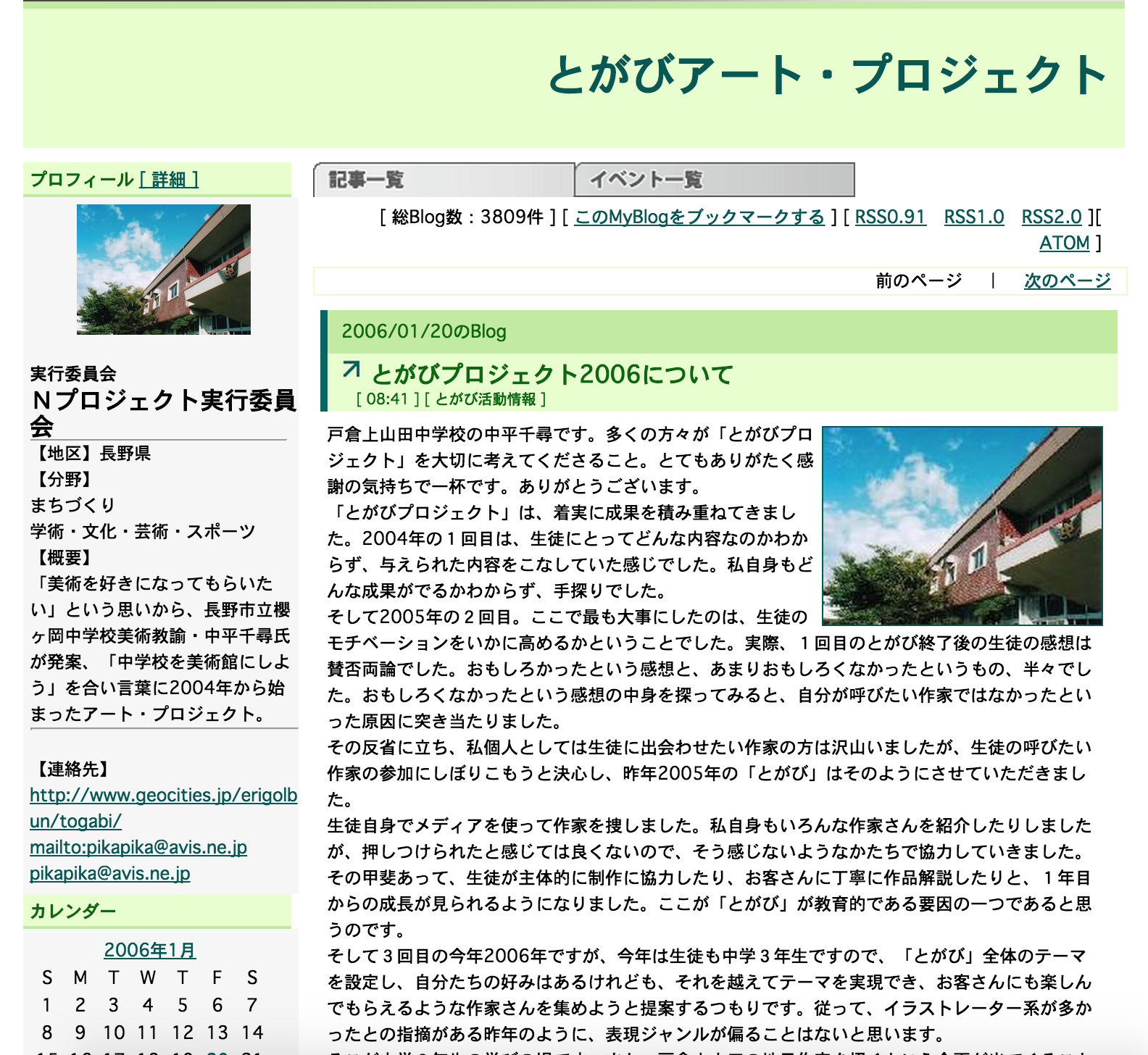 「とがび」の前身ともいえるような授業で、アーティストを学校に招き、その表現を鑑賞した上で自分の作品を制作・展示、それを一般の方に見てもらうという内容だったようです。